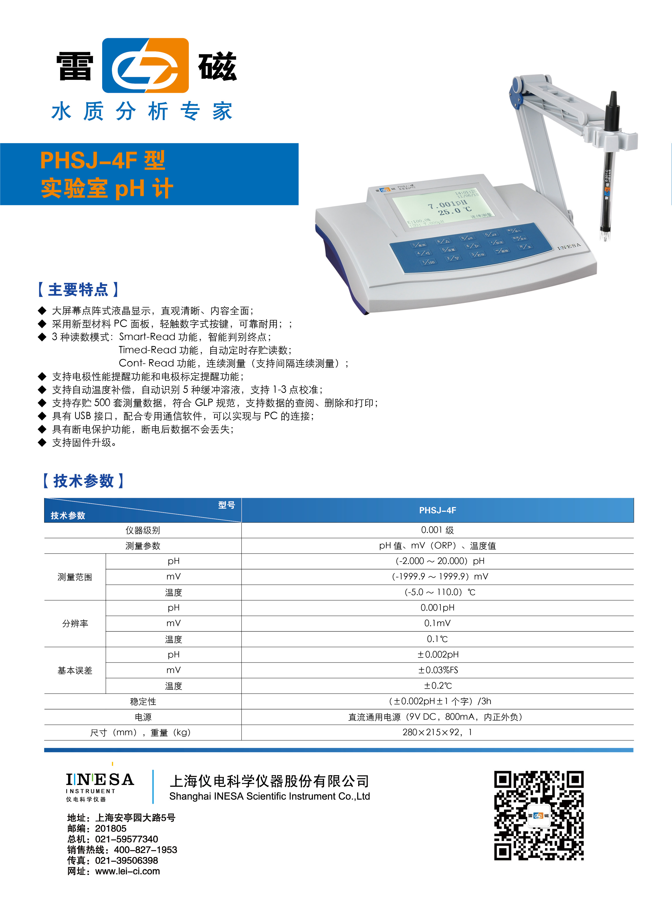 上海雷磁 實驗室PH計 PHSJ-4F